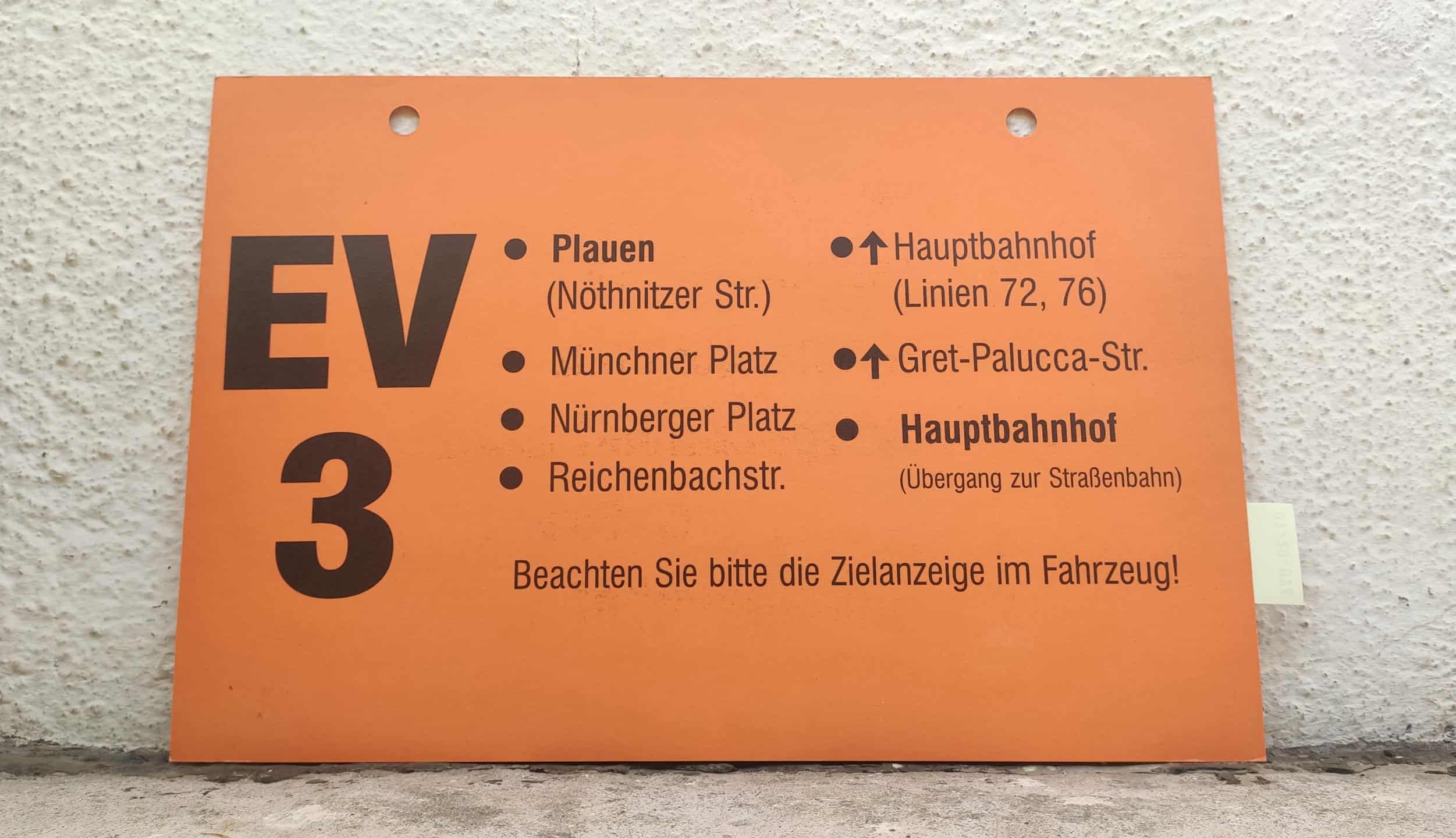 EV 3 Plauen (Nöthnitzer Straße) – Hauptbahnhof (Linien 72, 76) – Hauptbahnhof (Übergang zur Straßenbahn)