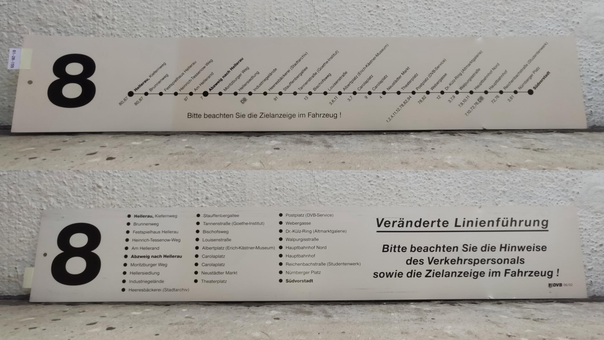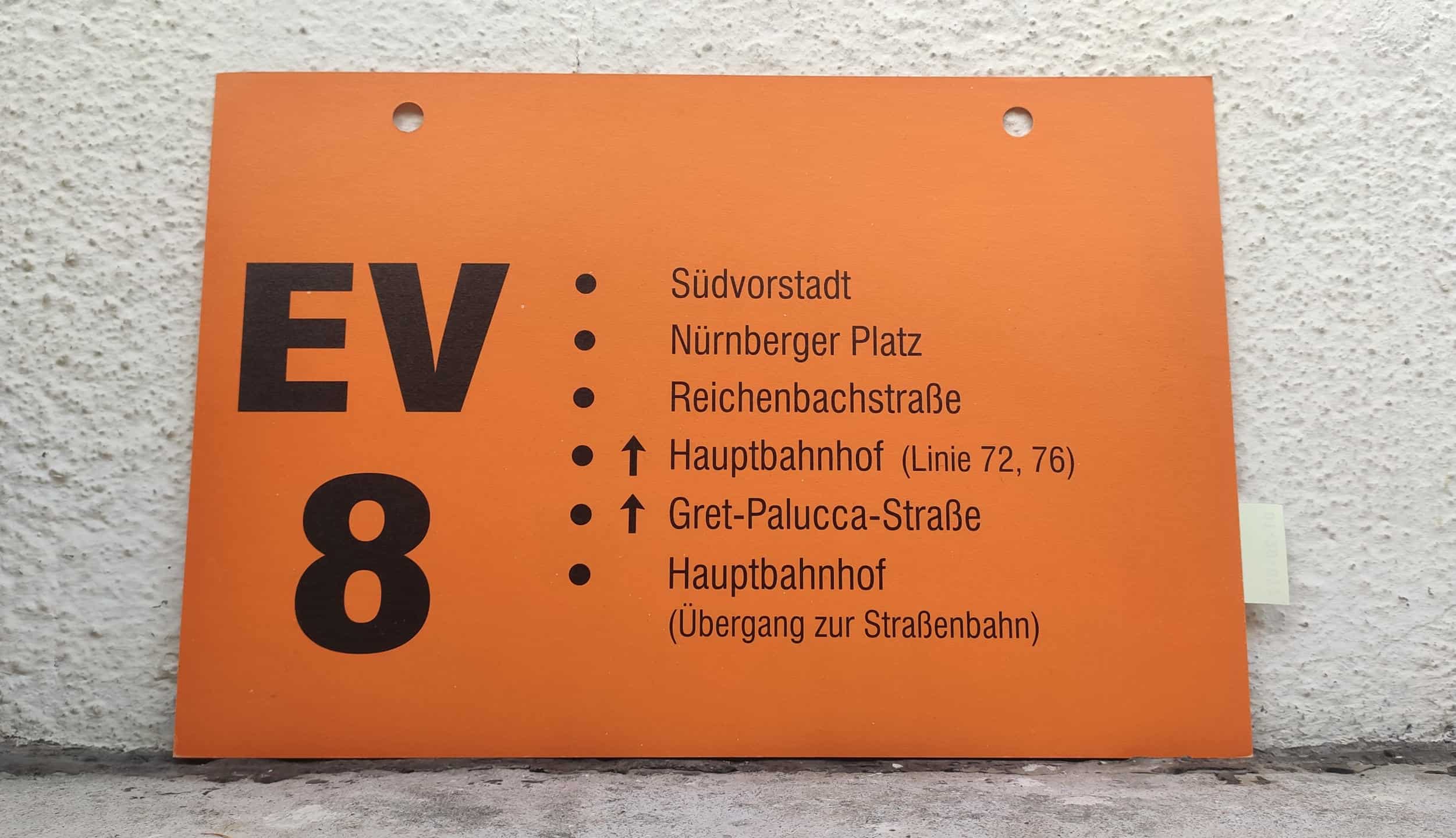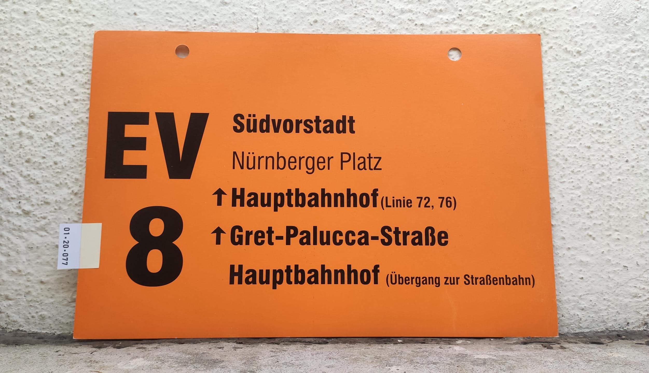 EV 8 Südvorstadt – Hauptbahnhof (Linien 72, 76) – Gret-Palucca-Straße – Hauptbahnhof (Übergang zur Straßenbahn)